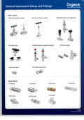 通用仪表阀门和接头,产品接口尺寸范围:1/16"至2",最大工作压力为10,000psi,使用温度为-54℃至649℃,主体材料可选各种不锈钢、合金、尼龙及PTFE等。