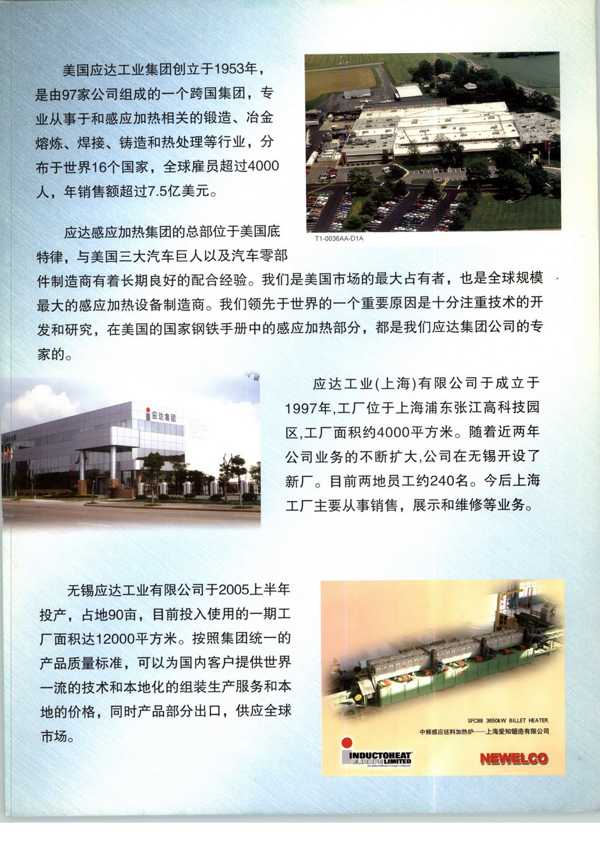 应达工业(上海)有限公司为美国应达集团在华独资子公司,注册地上海市浦东新区张江高科技园区郭守敬路50号,成立于1997年10月,注册资金310万美元,总投资额为500万美元,建筑面积3717.46 M2,占地面积 6600M2。 经营范围为: 设计、生产、维修各种电子感应阻性燃料热加工和精炼机械及其辅助零件和装置、管材加工设备、塑料热加工机械及其辅助零件和装置,销售自产产品。