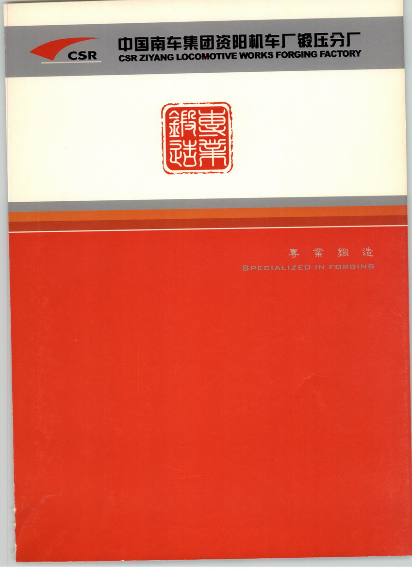 中国南车集团资阳机车厂始建于1966年,是我国干线内燃机车、电力机车和调车内燃机车的主要生产基地,也是全国500家大型企业之一。工厂地处四川省资阳市区,距成都市仅80公里,成渝铁路、成渝高速公路贯通厂 区,交通和通讯十分便捷。 锻压分厂是资阳机车厂的锻造专业生产厂。锻压分厂具有国内一流、国际先进水平的锻造设备:拥有3600吨水压机和800吨水压机,配有TR35和RR曲轴镦锻装置,生产的全纤维钢曲轴独具工艺特色和突出优势,被国内外公认为高应力工况曲轴的最佳锻造方法之一。拥有SPKA5000S高能螺旋压力机锻造生产线,16吨至1吨模锻锤,3吨至0.25吨系列自由锻锤,630吨至100吨系列压力机,以生产连杆、汽车发动机曲轴、汽车前桥、转向节等各类大型模锻件见长。拥有各种锻模和冷冲模具设计制造能力,具有锻压设备、起重设备、工业炉窑安装、大修能力。年锻造能力2万吨。 锻压分厂技术力量雄厚,工艺水平先进,检测手段可靠,质保体系健全。分厂先后通过ISO9001体系、ISO14000和OHSMS18000管理体系认证,获得中国、德国、法国、英国、挪威船级社认可,并获得了丰田公司产品认可。 锻压分厂生产的各类柴油机曲轴、连杆、车轴及机车车辆配件、汽车配件,产品不仅畅销全国铁路、船舶、航空、汽车、冶金、矿山等行业,还远销美国、日本、德国、印度、伊克、坦桑尼亚、赞比亚、泰国、越南等国家,产品质量受到中外用户普遍赞誉。