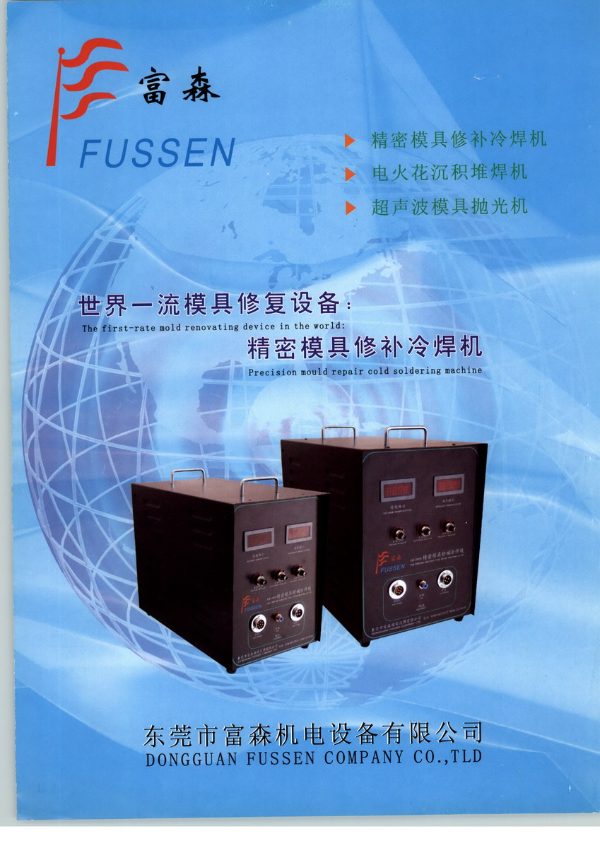 东莞市富森机电设备有限公司,是国内首家引进国外领先冷焊技术机构之一,专业生产精密模具修补冷焊机、金属缺陷修补冷焊机、薄板焊接机、逆变直流氩焊机;在国际制造业名城--中国东莞市已率先设立冷焊机设备组装加工厂,FUSSEN牌冷焊设备在欧美地区已广泛应用到各行各业,目前在中国还属新兴科技产业. 富森机电设备有限公司自2005年开展中国区业务以来已迅速由东莞辐射至全国各省市,形成以东莞为核心覆盖全国的营销网络,为众多制造企业提供匹配冷焊设备,同时为企业降低大量生产成本,保障了企业的可持续发展成效.