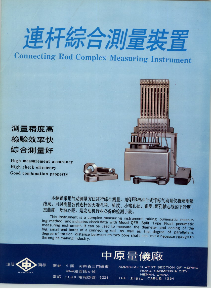 中原量仪股份有限公司创建于1965年,前身为中原量仪厂,是国家于1965年在引进日本东京精密气动、电动量仪成套技术基础上建成的国内唯一的专业量仪制造厂,是国内唯一集研究开发、生产制造、市场营销为一体的科技型企业。