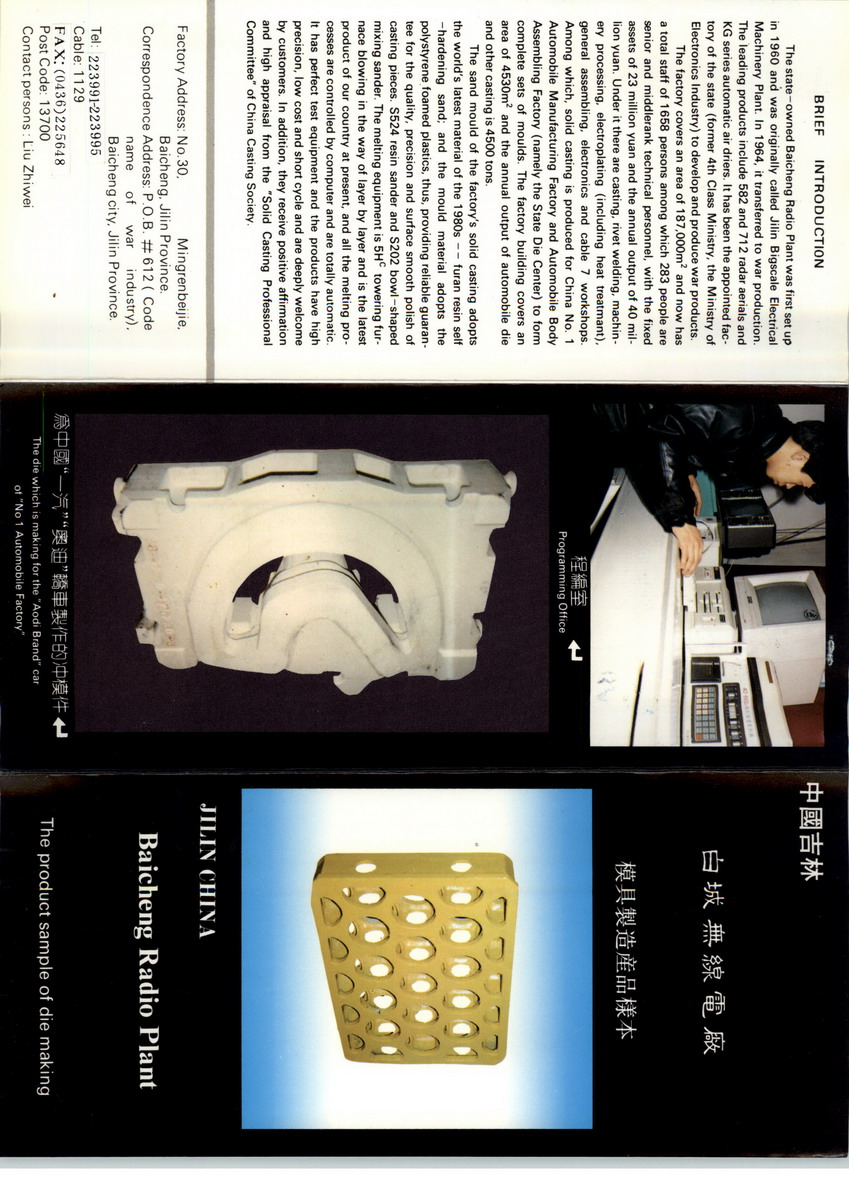 白城通业集团公司无线电厂位于吉林 白城 明仁北街30号(邮政编码137000),主要经营电子产品计算机网络压力容 器 电线电缆。