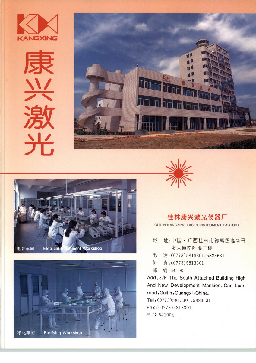桂林市康兴激光仪器厂办公室地址位于广西最重要的旅游城市,享有“山水甲天下”的桂林,桂林 高新创业大厦二楼(邮编:541004)(行政区号:450305),于1989-12-04 在桂林工商局注册成立,注册资本为120(万元),在工厂发展壮大的27年里,我们始终为客户提供最好的产品、良好的技术支持、健全的售后服务,我工厂主要经营激光治疗仪,超声波美容仪,制造,经销,我们有最好的产品和专业的销售和技术团队,目前团队人数有53人,工厂座机电话是07735836866,我工厂是桂林通用仪器仪表厂黄页行业内知名企业,如果您对我工厂的产品服务有兴趣,期待您在线留言或者来电咨询愿与社会各界同仁携手合作,谋求共同发展,继续为新老客户提供最优秀的产品和服务。工厂与多家桂林通用仪器仪表厂黄页零售商和代理商建立了长期稳定的合作关系,品种齐全、价格合理,企业实力雄厚,重信用、守合同、保证产品质量,以多品种经营特色和薄利多销的原则,赢得了广大客户的信任。