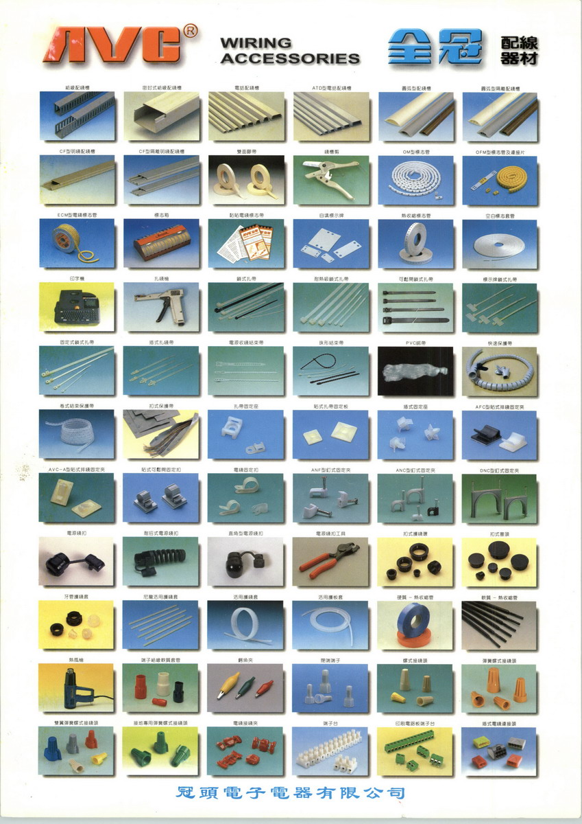 東莞冠頭電子電器有限公司,乃位於外資企業高度密集外向型工業的東莞市大朗鎮上。AVC全冠企業本服務華南地區客戶,于東莞市大朗鎮設立東莞冠頭電子電器有限公司,產品應用於供電系統、發動電機、電氣控制、電動昇降設備、電子元器件、電子及家用電器設備、自動化工控設備、車用/船舶設備配接、測量精密機械設備、電腦IC組裝設備、冷凍空調、建築工程、裝潢設計、燈飾照明器材、電線電纜工程配接使用,產品擁有環保ROSH、防水IP68、CSA、UL等等國際標準檢驗合格認證之配線器材。AVC全冠專業製造環保ROSH、UL 、氣密防水IP68 、EN50262、CSA等國際標準檢驗合格認證之配線器材。AVC全冠 - UL電纜固定頭 à氣密防水IP68 、防火-94V0、EPDM戶外耐候、NBR機械耐油、防磁波ECM耐化學、耐酸鹼Viton、耐寒耐高溫(-60℃~220℃) 、高扭力、特強抗拉力、è 標準型、迷你型、巨大型、縮小型、彎角型、耐扭型、多孔型、防磁波型AVC全冠 - UL鎖式紮帶 à防火-94V0、耐高溫(150℃~220℃) 、耐酸鹼Viton、耐候(長時間抗UV紫外線)ROSH無鉛絕緣配線槽、塑膠浪管(PA6尼龍)、剖開浪管、金屬蛇管(包塑軟護管)專業製造專業銷售,產品現貨供應,種類齊全,材質多樣,牙規標準,遵循著以客為尊的服務原則,全面性為客戶提供,實用性佳,品質良好,價格實惠的產品,提升客戶產品效能品質及整體形象,共創雙贏機會。