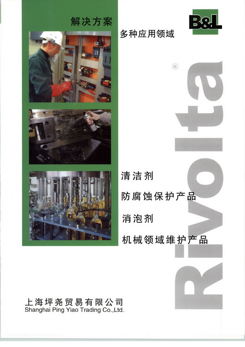 上海坪尧贸易有限公司为美国CPI合成油,德国Engelhard多功能吸附式干燥剂、美国Guardian食品级润滑脂、德国Liqui Moly特种润滑剂、德国Bechem金属加工油、德国Rhneus高温润滑膏和金属加工液、美国GE氮化硼涂层、德国Rivolta特种润滑油、美国联碳UCON水性淬火液抗燃液压油、法国Condat多元醇脂抗燃液压油重载低速润滑脂、美挪威国家石油Statoil的合成润滑油、英国Oilstore的环保型润滑油及溶剂、美国MasterCut Tool金属加工刀具等在中国市场的代理。是由一群合成油专家及压缩机专业人士所组成的专业公司。 目前在上海外高桥保税区、闵行地区、广州和北京各有一个发货中心,并备有充足的现货,以服务中国境内的客户及经销商。 公司主要市场: 一、各类高温条件下工作的工业设备;二、各类大型压缩机制造厂、维修厂;三、各种食品工业的设备;四、电子元件、电气设备、电动器械等部件厂商;五、油田生产及原油精练行业;六、金属加工和模具加工行业;七、各类工业滑动及禁固部件的润滑维护;八、高级锁具、精密仪器、以及名车维护。