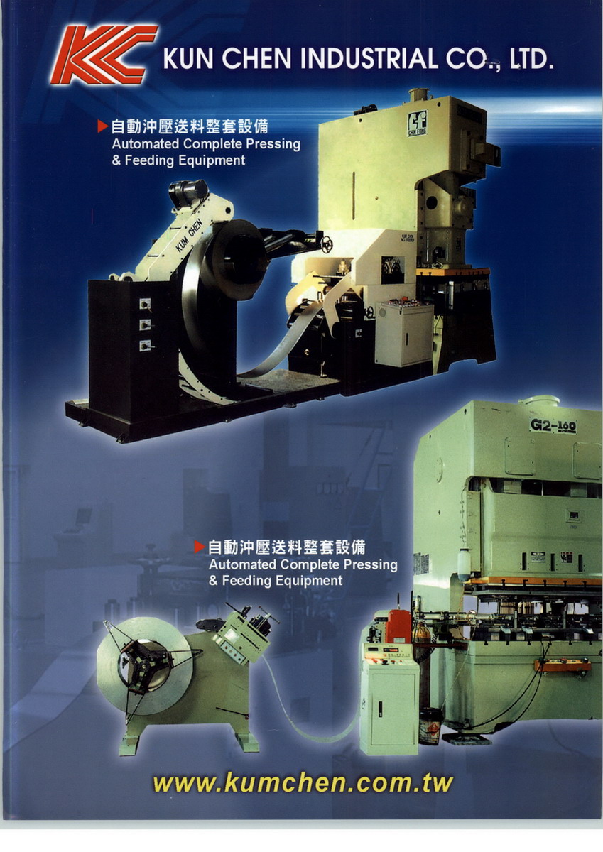 昆程工业有限公司是专业生产冲床、剪床整条自动化设备高科技公司, 是集设计、制造、检验、销售及售后服务为一体的完善企业。 公司成立于1981年, 二十多年以来, 昆程公司引进了先进的生产设备及专业的技术人才,注重每道工序的严谨品质控制, 结合国外的先进理念及技术全力于高品质、高精度之冲压自动化设备及铆钉机、油压机的研发与生产, 务使每一部机器都能达到最完美的效能, 从而为客户发挥最高的工作效率。 昆程公司凭借专业的技术、严谨的品质、热忱的服务赢得了众多客户的信赖与支持, 公司不仅在台湾及江苏昆山设有工厂,并且在上海、天津、重庆及泰国拥有分公司、办事处。同时我们也外销海外诸国及欧洲、澳洲、东南亚, 诚为业界实力稳健之制造商。
