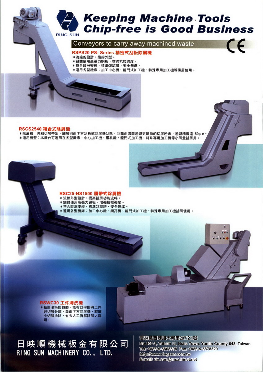 日映順機械板金有限公司在專業領不斷鑽研精進,累積了二十年的技術及經驗,日映順可以說是「排屑機的專家」! 1984年5月成立的映順企業社,於1997年改名為日映順機械板金有限公司,廠房約500坪,員工人數16人。 自1984創立至今,從最初僅研發履帶式排屑機鏈條功能、到今日完成二代零件清洗工件機,客戶的任何需求,都可在最短的時間內,精確且完善的獲得解決方案,有效的提升產品品質,節省時間、金錢成本。嚴謹的品質管制、優異的功能性,加上準時交貨誠信及高度服務熱忱,使得福裕事業股份有限公司、綺發機械工廠股份有限公司、遠東機械股份有限公司…等機械大廠,都成為日映順長期合作的客戶。 日映順始終堅持品質第一、研發創新、服務至上的信念,為客戶提供更完善、更精準的服務。