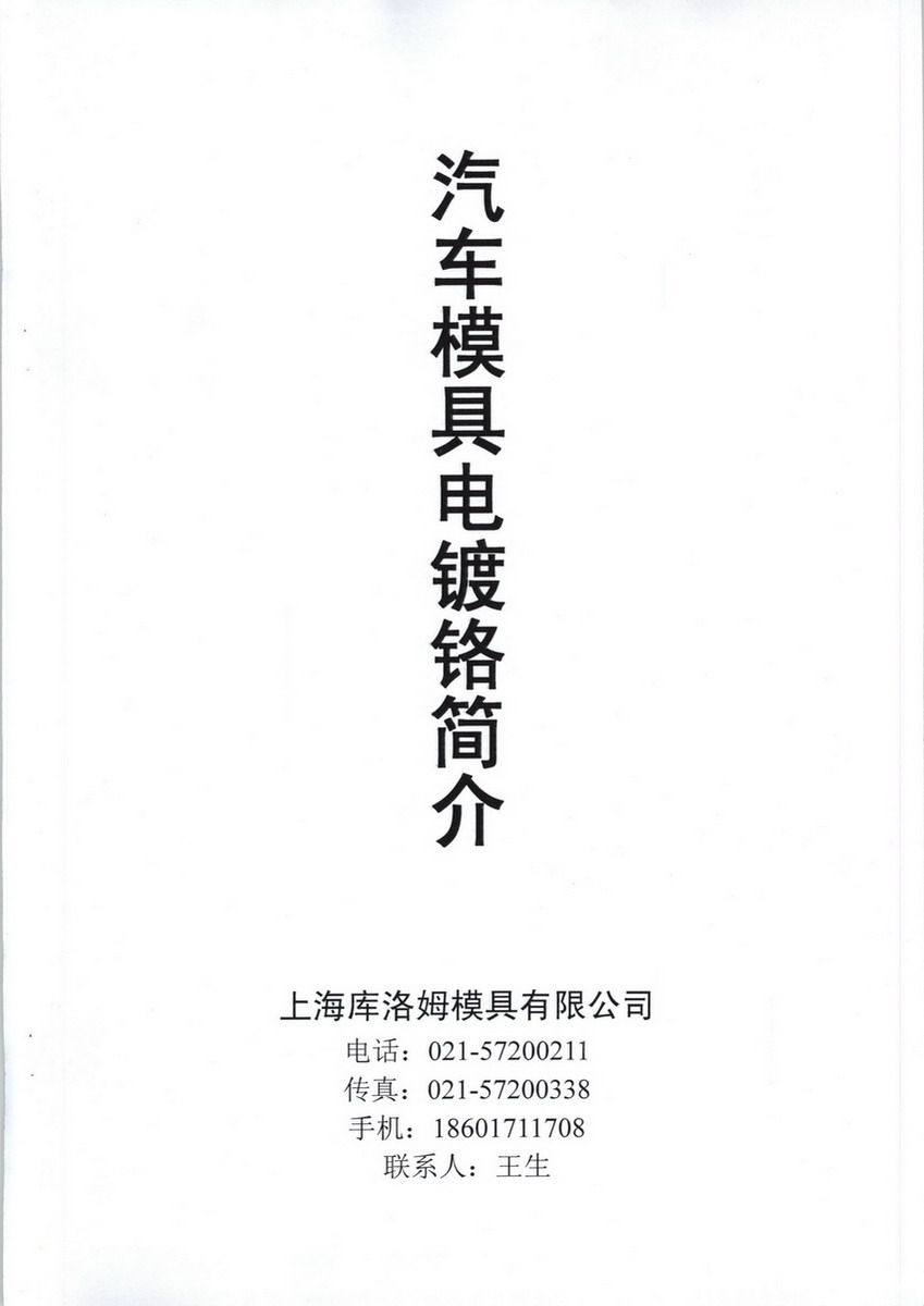 本公司成立于2010年5月,坐落于上海市金山区吕巷镇厂房占地面积1320m2,生产能力年处理1000个模具,由原外资公司(冲压模具镀铬技术创始日本企业)独立而来。公司拥有着国内同行业最早一批从事模具电镀专业的技术人员和一批国际一流的软硬件资源,本公司是一家吸收国外先进工艺技术进行铸铁、铸钢模具表面处理的专业厂家,集销售、技术、服务于一体,公司坚持“质量为先,信誉为重,管理为本,服务为诚”的宗旨,高品味低价位、诚信经营、互惠互利的经营理念,围绕“精益求精、精简高效”的经营方针,自成立以来以良好的产品质量和优质的售后服务赢得了社会各企业的支持,并建立了良好的合作关系。