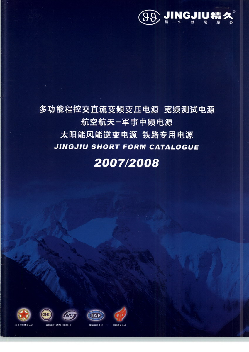 公司主要产品有JJN01系列军用油机逆变电源、JJNO2系列军用行车自发电系统、JJT01系列军用电机电压调节器、JJHJY系列航空-军 事专用电源、JJZ系列可编程中频电源、98系列交流变频变压电源、99系列交流变频变压电源、JJ10系列可编程变频电源、JJ03多功能交 直流变频变压电源、JJ05系列宽频测试电源、JJTLY系列铁路信号专用电源、JJCY系列船用变频岸电电源 、SungIow系列太阳能并网逆变电源、JJAZY-1安全性能综合测试仪等十四大类、共计上百个规格型号,产品广泛应用于航空航天国防军工、机车舰船、地空通讯、自动、控制、科研实验、质量监督检测、家用电器和进口设备等国防建设、社会生产及生活服务的各个领域,同时不断加强与国际知名公司合作 ,使产品走出国门,远销欧美和东南亚市场。