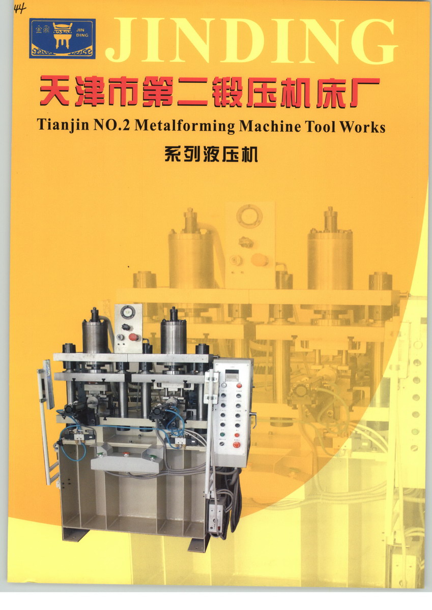 天津市第二锻压机床厂具有40多年生产液压机床的历史。产品共分为9个主系列,8个派生系列,是国家定点生产液压机床的主要专业厂家之一,具有制造锻压设备的丰富经验和雄厚的技术力量。本厂拥有职工557人,其中专业技术人员55人,中高级技术职称31人,企业占地面积35000平方米,坐落天津北辰工业区,厂房设备,检测手段先进、完备。用户市场遍及军工、农机、纺织机械、航天航空、家用电器、机床、汽车、轻工、磨具磨料等行业。