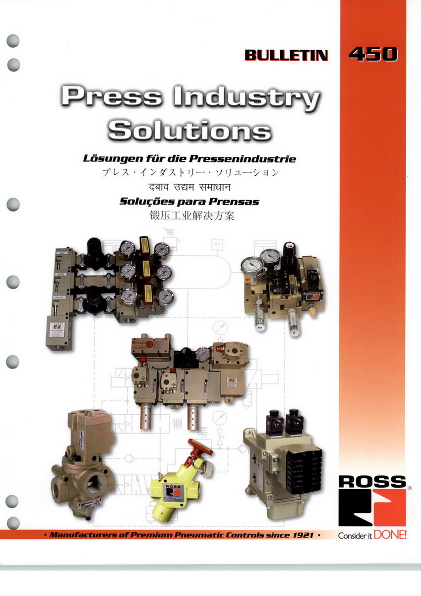 ROSS Controls® and concern for machine safety... the two go hand in hand. ROSS has been designing and supplying the "industry standards" of safety products for pneumatic energy isolation (LOTO) and control reliable double valves for the Press metal-forming industry for clutch/brake applications and the general manufacturing sector for decades. Even before Federal and State Occupational Safety and Health Administrations (OSHA) existed, ROSS designed and supplied valves for energy isolation and mechanical press clutch/brake control valves that were later widely recognized as aids to companies for regulatory compliance in non-press applications. These are some of the most safety critical pneumatic valve applications in manufacturing today, and ROSS has been there to help make jobs safer for workers, helping to protect our customers' investments in machinery, and increase productivity.