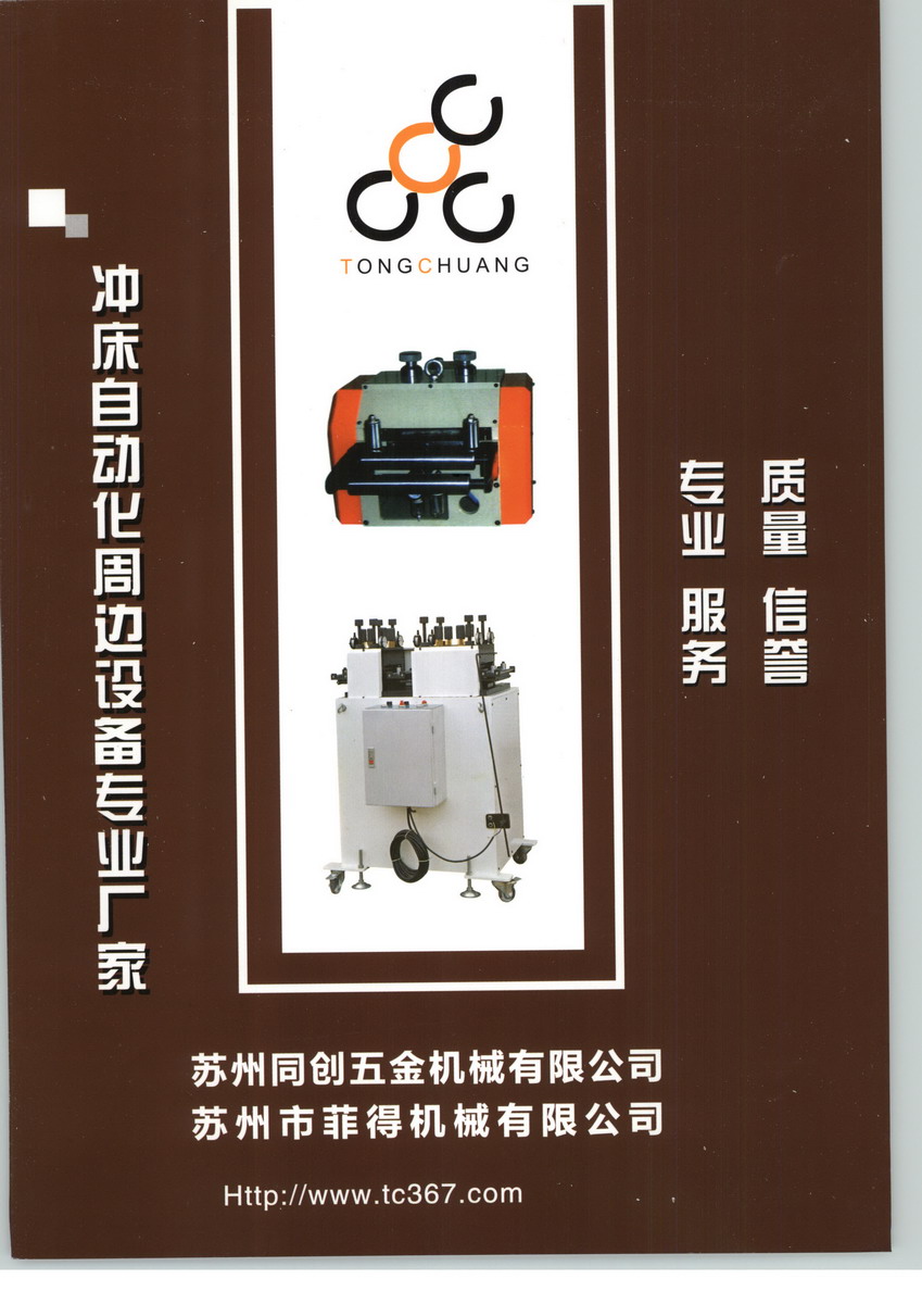 苏州同创五金机械有限公司系专业生产、销售、维修冲床周边自动化整厂设备、环保型冲床隔音箱及各类冲床电气系统、变频器检修厂家。沿用台湾专业技术及先进经营和管理理念,同时敝司从业人员具有良好素质和丰富经验,能及时不断满足客户生产的需求。我司承诺:我司所销售的产品能始终如一维持高品质,并定期为所售出设备做检修与服务。同创能为各类电子及五金冲压厂商提供相关及适用的理想的冲床周边自动化整厂设备。快捷的服务,24小时随时待命抢修,技术精湛的服务人员能及时解决各类疑难机械杂症。优良的品质及完善的售后服务为敝司之基本理念,敝司将沿承“诚信经营,品质第一,专业服务,有续发展”的经营方针。长期专业为客户服务,同时与客户互利互荣,共同发展,也是全体员工共同遵循的企业政策。这些方针和政策将激励同创人不懈努力,超强突破,为广大客户提供一个全新“五星级”的高层人性化机械服务。