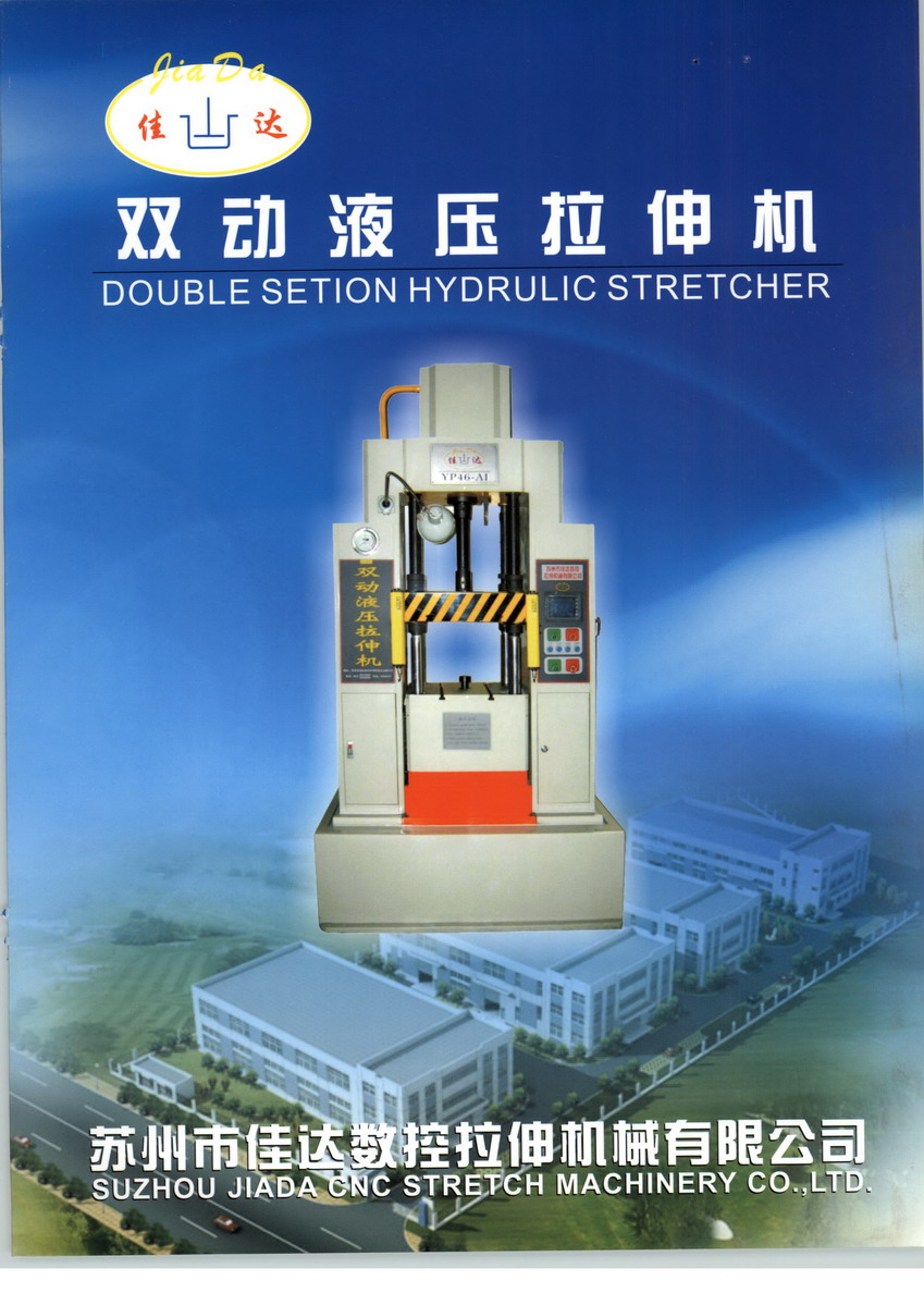 我公司是生产液压双动薄板拉伸机的专业化企业。主要产品有:数控YP30-AI、YP46-AI、YP65-AI、YP80-AI、YP100-AI、YP120-AI、YP160-AI。同时承接非标准拉伸机的设计与生产,产品畅销国内外。本公司产品全部采用国外先进标准组织生产、注册商标“佳达”牌数控双动拉伸机,我公司有完善质量管理体系,完备的产品测试手段,灵活的销售渠道,热忱的服务态度,向您提供一切方便。真诚希望新老客户与我公司进行广泛的合作。我们的共同事业将在彼此的合作中突飞猛进。该系列数控与电器双动拉伸机结构新颖、性能可靠、拉伸工艺精度高、操作方便、能耗低,是老式机床拉伸机的换代新品。广泛应用于日用五金、家电、汽车、医疗器材、消防器材、铝制品、搪瓷制品、不锈钢制品等等。可对不锈钢板、铜板、铝板、铁板等材料进行拉伸形成工艺。设计制造各种拉伸模具和冲压模。